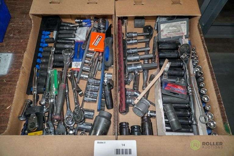 2 Trays Of Sockets Ratchets And Wrench Husky And Duralast Roller Auctions